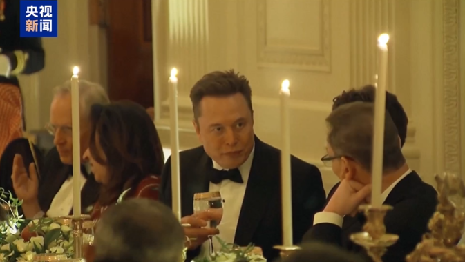 当地时间11月18日晚,美国亿万富翁埃隆·马斯克在白宫参加了美国总统特朗普为沙特王储穆罕默德·本·萨勒曼举行的晚宴。